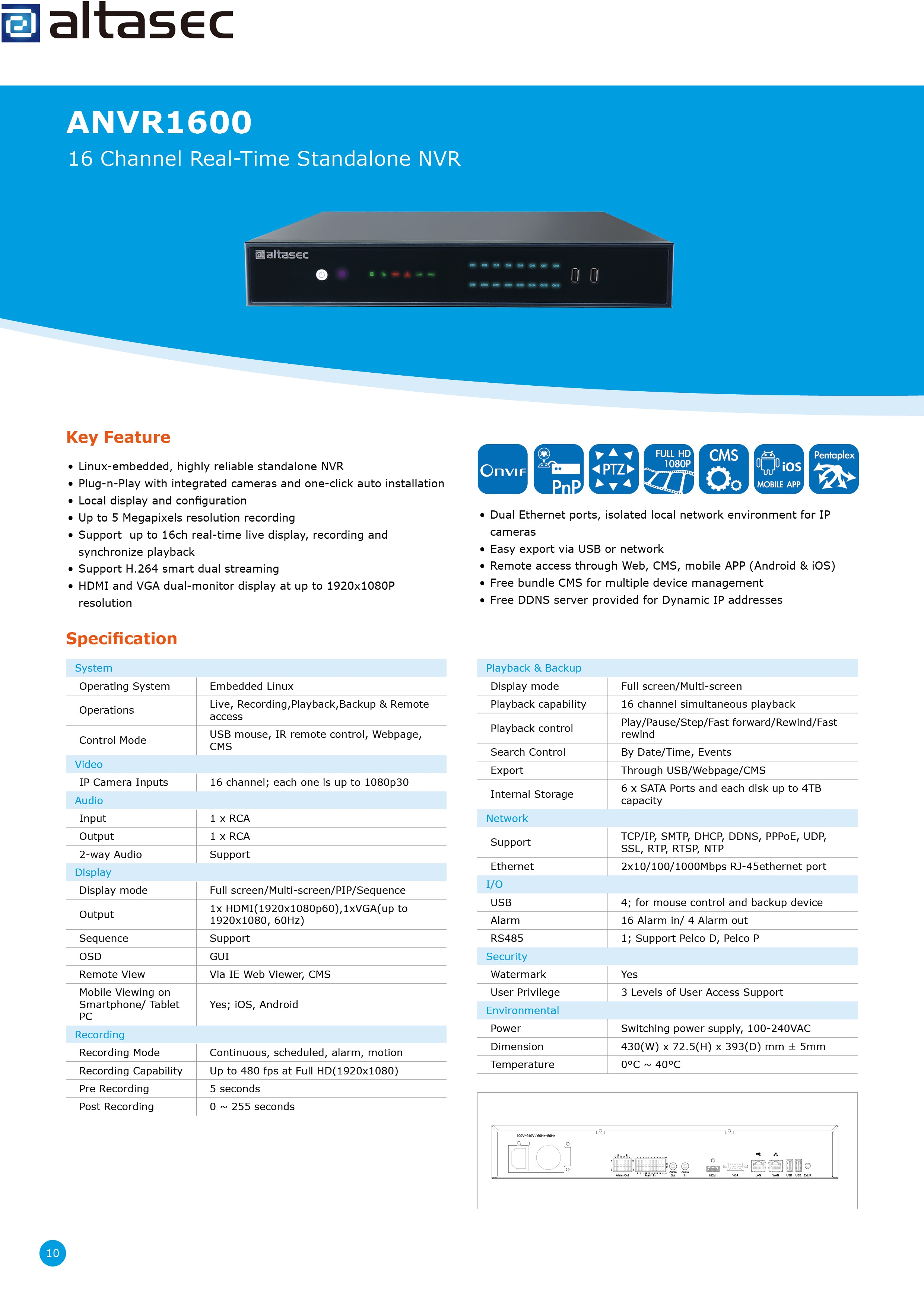 | ANVR1600 | 16CH Real-Time Embedded NVR |